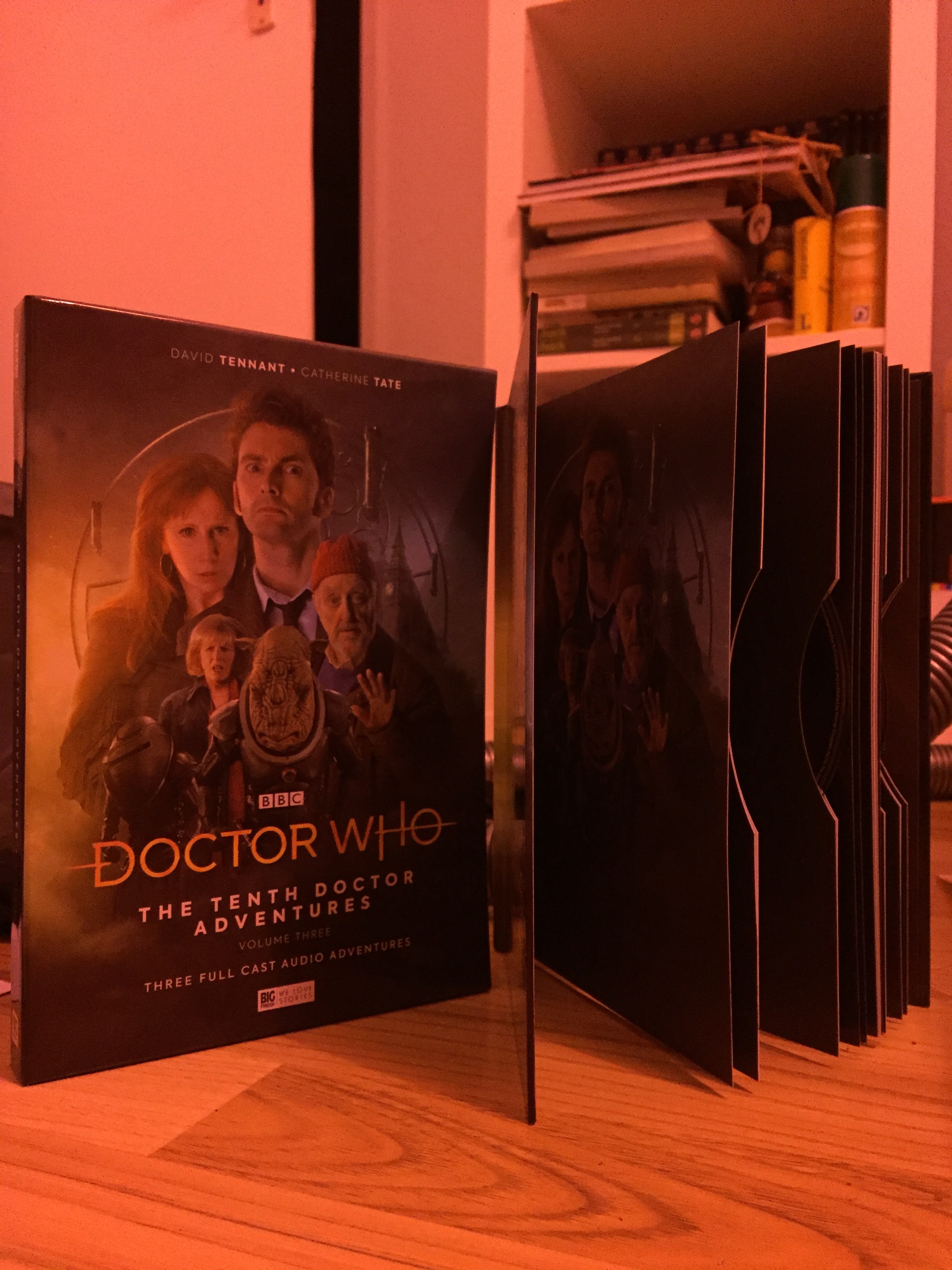 I decided to buy the special edition of the volume one of ‘The Tenth Doctor Adventures’. The packaging is amazing. It has the size of a DVD box. The box is made out of a stable carton. The DVD shell itself is like a book. Actually it is a book.